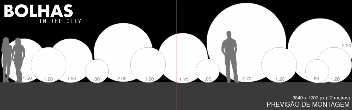 BOLHAS IN THE CITY ( BUBBLES IN THE CITY) is an installation that combines scenography and video projection with simple object: the ball. In a ludic way, the giant bubbles are an unusual tridimensional surface for the viewer during the day, and scenery for amazing visuals at night.